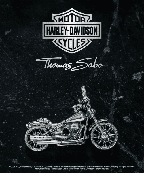 Asphalt. Engines. Freedom. The American motorcycle icon Harley-Davidson stands for a way of life that goes far beyond steel and chrome – independent, uncompromising and driven by the spirit of the open road. In an exclusive collaboration with Harley-Davidson, THOMAS SABO Rebel at Heart captures this unmistakable energy and translates it into jewellery designs that are powerful, distinctive and full of character. The collection unites two brands shaped by the same mindset: courage, individuality and pioneering spirit – on the road as much as in design.