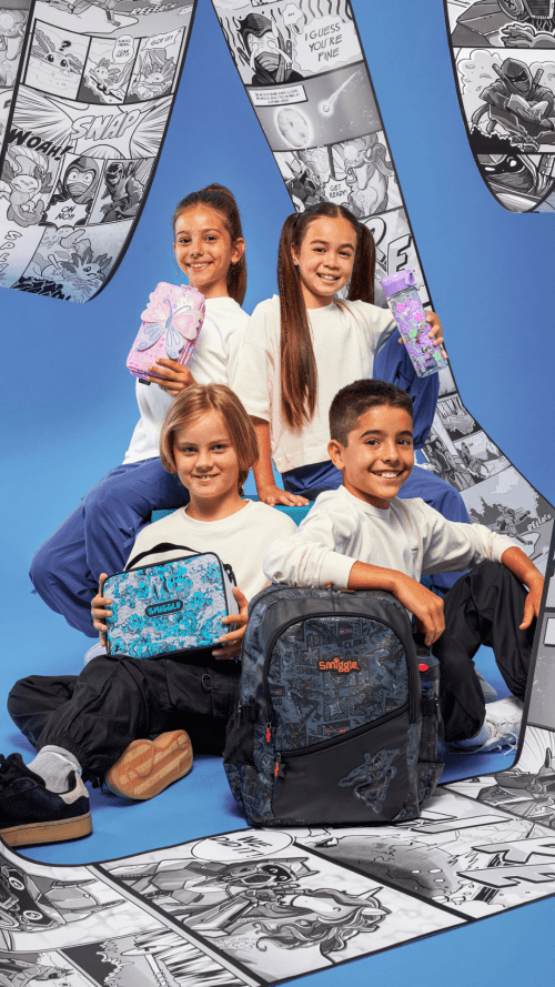 Their next colourful Smiggle story starts here! Drawn together by adventure, our collection features stylish graphic prints and vibrant characters ready for action!